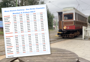 With the ongoing bus strike still unresolved, below is the MER timetable for Friday 27th March. According to Isle of Man Transport "These services are treated as bus services for ticketing - standard bus fares will apply on all services and School Children may use the relevant SCH travel cards to t…