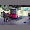 Since being laid in the early 1960s, the Victoria Pier extension of the Horse Tramway was rarely used. On this occasion preserved Douglas Cable Car 72/73 is seen adjacent to the Sea Terminal building on the 8th September 1993. Such journeys are no longer possible due to the track being tarred over…