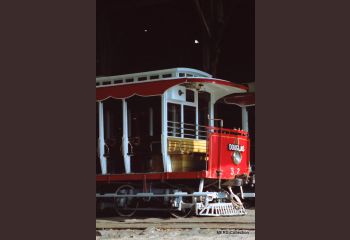 An unusual photograph of Illuminated Tunnel Car 9 on the stop at Derby Castle during December 1995. The car was employed on the Groudle Shuttle in connection with Santa Trains being operated by the Groudle Glen Railway. (Photo: MERS Collection)